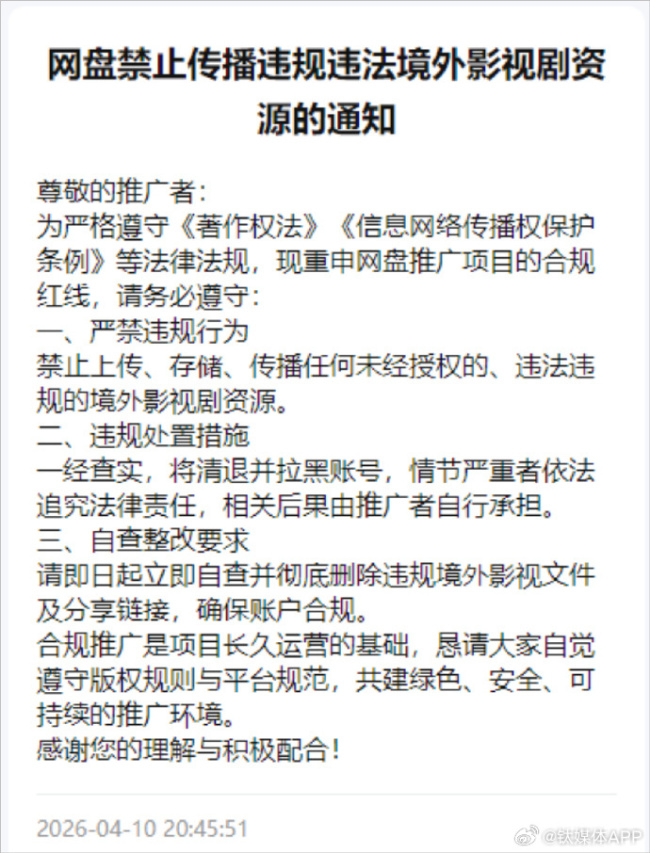 网盘禁止传播海外影视资源 网盘中的海外影视资源迎来最严清查网盘禁止传播海外影视资源2026-04-16 11:59:28